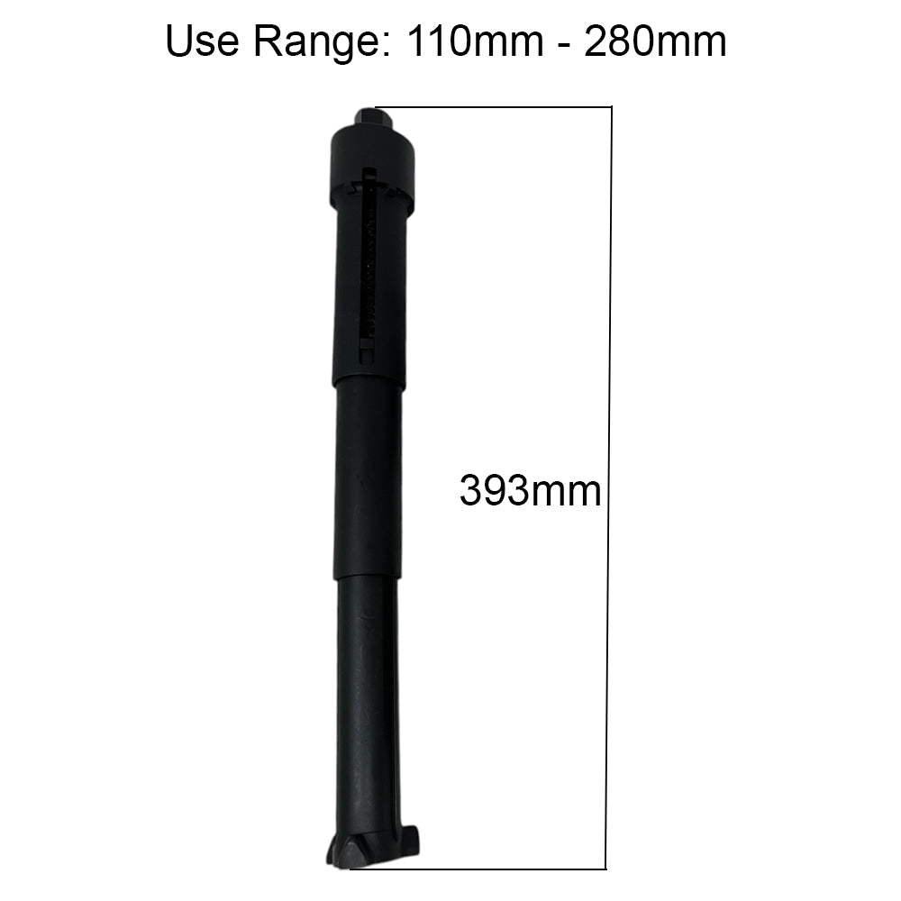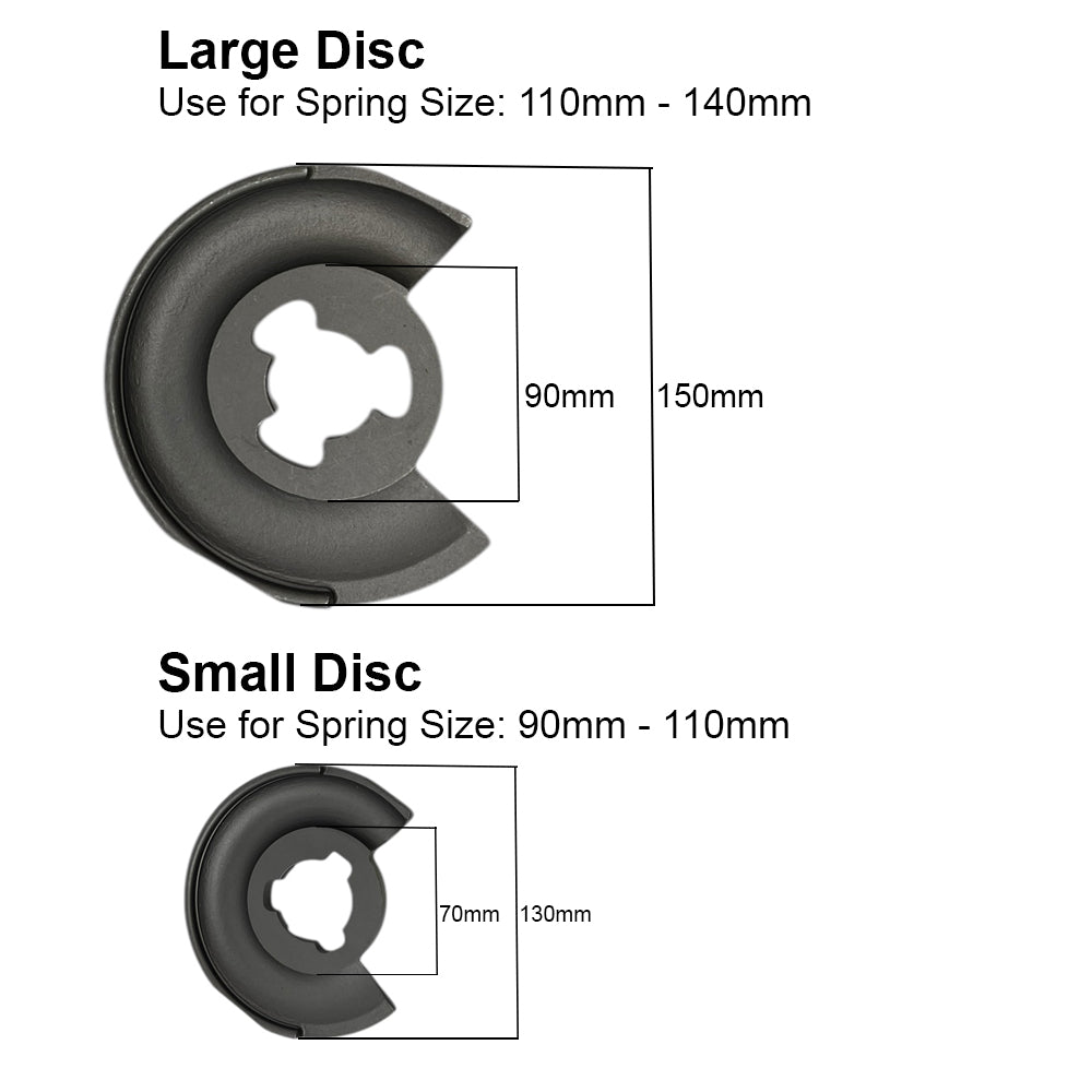 The telescopic fork (120 – 325-mm) fits through the center hole in the lower control arm to engage the two compressor plates. The spring is compressed by turning the nut on the telescopic fork using a socket wrench (no air powered tools). The spring can then be removed for service and/or replacement.